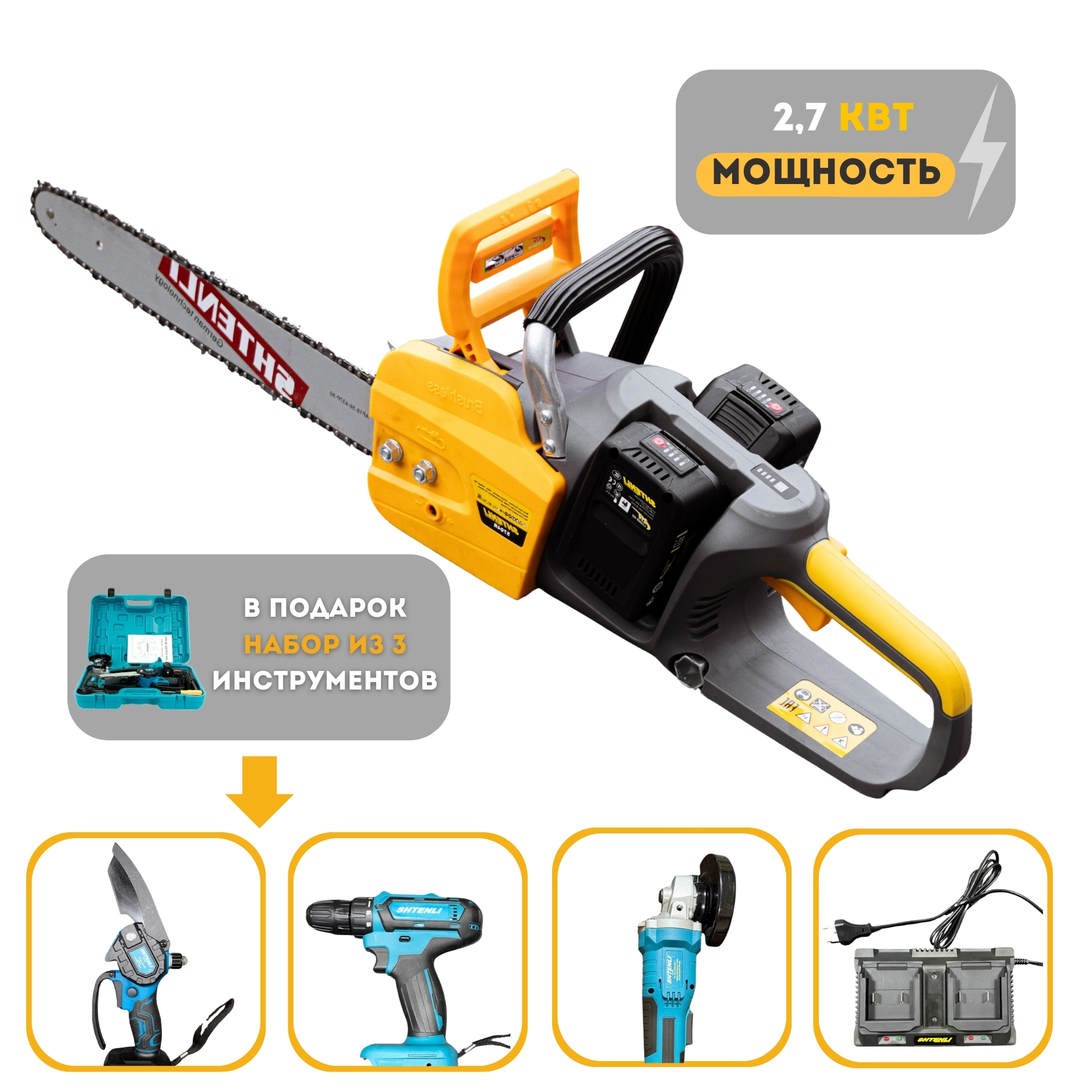 Мощная аккумуляторная пила Shtenli это аналогичная замена бензиновой пиле, она имеет такую же мощность как и бензиновая пила и обладает рядом преимуществ.