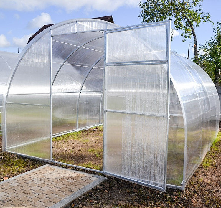 Высота конструкции позволяет находиться в ней в полный рост и выращивать любые виды растений.Также в теплице имеются 2 двери для доступности входа и 2 форточки для качественного проветривания.